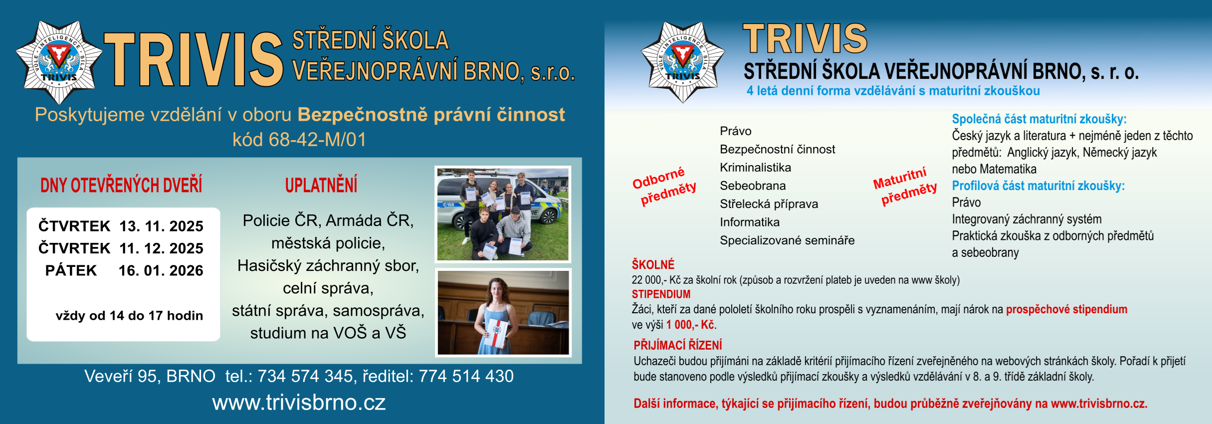 TRIVIS – Střední škola veřejnoprávní Brno, s.r.o., poskytuje vzdělání v oboru: